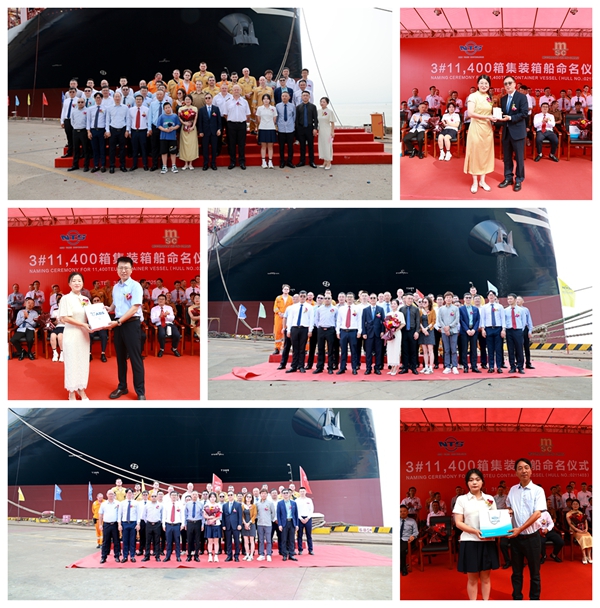 On 31 August, 2025, we held naming ceremony for three units of 11,400 TEU Container Vessels with Builder's Hull Nos.0211402, 0211403 and 0211404. The company's Chief Executive Officer Mr. Liu Haijin, Executive Deputy General Manager Mr. Zhang Yuyong, General Manager Assistant Mr. Xu Zhenyu, MSC NB Area Manager Mr. YB Lee,MSC site manager Mr. Chen Yukun,ABS site manager Mr. Cao Wei and other VIP guests attended this ceremony.