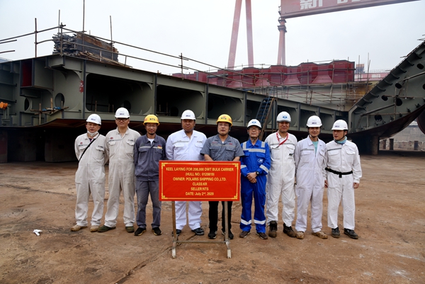 On July 2, 2020, the Keel Laying Ceremony of No.19 208,000 DWT Bulk Carrier has been carried out successfully by New Times Shipbuilding Co., Ltd. Executive General Manager Mr.Zhang Yuyong, General Manager Assistant Mr.Ding Baiying from New Times Shipyard, Mr.Han from Owner POLARIS and Mr.Park from Class KR attended and witnessed the ceremony together.