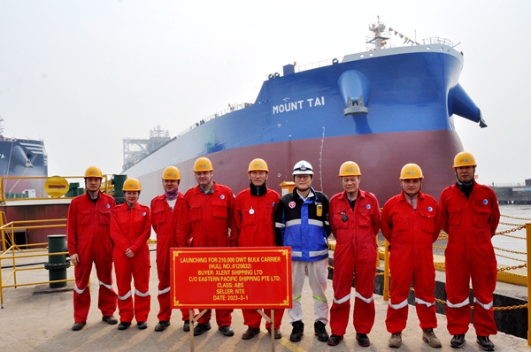 On March 1, 2023, the launching ceremony of one 210,000 DWT Bulk Carrier bearing builder's hull no.0120832 has been carried out successfully by New Times Shipbuilding Co., Ltd. Our Executive Deputy General Manager Mr. Zhang Yuyong, the representatives from EPS Site Manager Mr. Ni Jie and representatives from ABS classification society attended and witnessed the ceremony together.