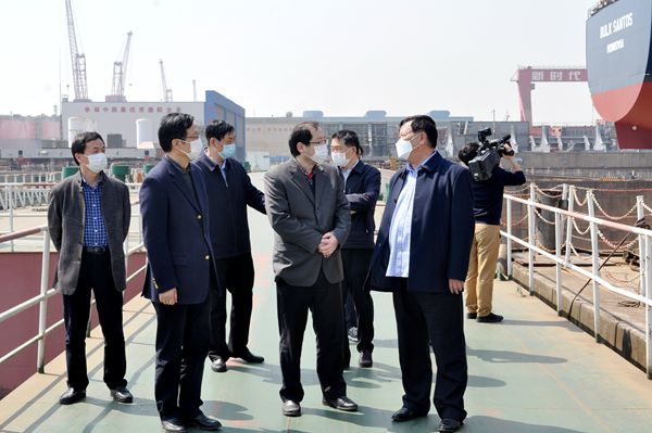 在公司的大型干船塢內(nèi),兩艘20.8萬(wàn)噸散貨輪正在加快建造!澳銈兘ㄔ斓淖畲髧嵨坏拇嵌啻?”“一條船在塢內(nèi)要造多久?”“這次疫情對(duì)你們的影響情況如何?”“企業(yè)目前有多少人復(fù)工了?”何聰頻頻發(fā)問(wèn),詳細(xì)了解企業(yè)的發(fā)展及疫情后復(fù)工復(fù)產(chǎn)情況。當(dāng)?shù)弥现芷髽I(yè)剛剛交付了一艘32.5萬(wàn)噸超大型礦砂船時(shí),何聰連連表示稱贊。董事長(zhǎng)袁凱飛介紹,疫情發(fā)生以來(lái),公司按照“兩手抓、兩不誤”的要求,全面開(kāi)展“抗疫情、促?gòu)?fù)工、保生產(chǎn)”活動(dòng),安全有序組織外來(lái)務(wù)工人員返崗,跑出了復(fù)工復(fù)產(chǎn)的“加速度”,努力將疫情的影響降至最低。