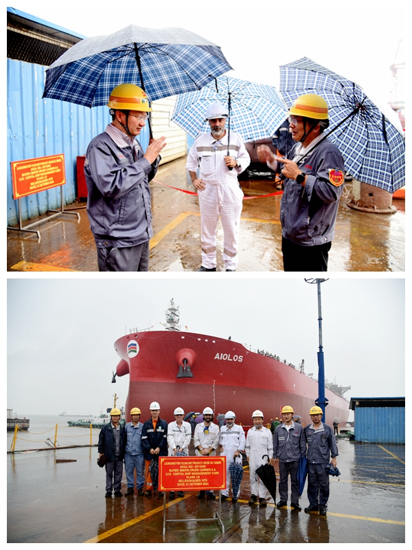 10月31日下午、11月2日下午,公司1#塢區(qū)域,船舶下水工作如期開展,45#115000噸油船、54#50000噸Ⅱ類化學(xué)品船順利駛出船塢,該兩艘船舶下水節(jié)點(diǎn)的順利完成標(biāo)志著1#塢2024年度8艘船舶建成下水目標(biāo)提前實(shí)現(xiàn)。