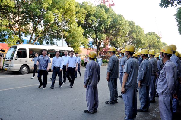 7月5日下午,泰州市委副書記湯成快到公司檢查防臺防汛準備工作,董事長袁凱飛、副董事長朱炳康、黨委書記周燦榮陪同。靖江市委副書記、統(tǒng)戰(zhàn)部部長陶德喜,副市長于政參加檢查活動。
