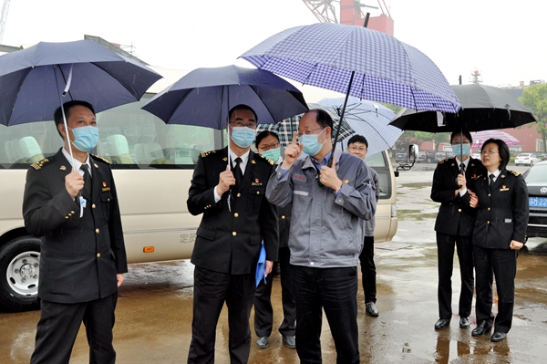 現(xiàn)場繁忙的生產(chǎn)場景讓來訪的嚴華斌處長一行感受到了企業(yè)生產(chǎn)建設熱火朝天的氛圍,展廳陳列的船舶產(chǎn)品展現(xiàn)了企業(yè)發(fā)展所取得的輝煌成就、總經(jīng)理劉海金對企業(yè)發(fā)展前景的描述更是讓嚴華斌處長一行稱贊不已。嚴華斌處長表示,看到企業(yè)蒸蒸日上的發(fā)展勢頭,企業(yè)有業(yè)務方面的任何需求都可以隨時與海關(guān)進行無障礙溝通,海關(guān)將一如既往地做好各項服務工作,引導企業(yè)規(guī)范經(jīng)營,助力企業(yè)健康快速發(fā)展。