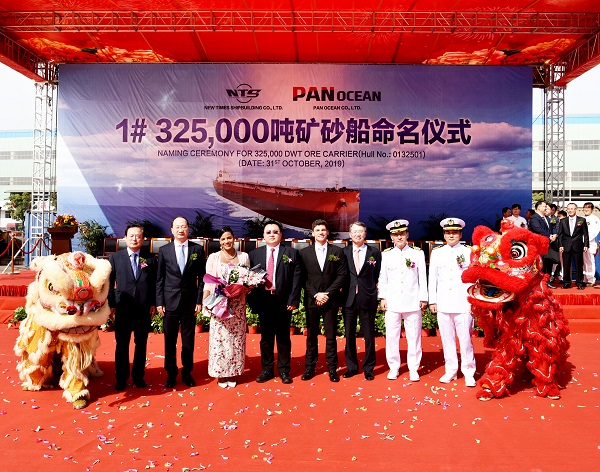 10月31日,1#325000噸vloc命名儀式隆重舉行,總經(jīng)理劉海金、常務(wù)副總經(jīng)理張玉永,公司領(lǐng)導朱韓鋼、徐震宇、袁衡與韓國船東 Pan Ocean公司 Sung Yob Choo先生、圣母 Michelle Gonzalez女士等嘉賓共同出席命名儀式。儀式由常務(wù)副總經(jīng)理張玉永主持,總經(jīng)理劉海金與 Sung Yob Choo先生分別致辭,共同表達了新船建成的喜悅之情,期待在未來的合作中進一步形成雙贏的愿望。在喜慶的氣氛中,圣母 Michelle Gonzalez女士將1#325000噸vloc命名為 " SEA GUAIBA "號。