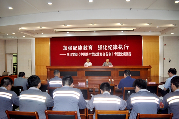 為隆重慶祝偉大的中國共產(chǎn)黨成立103周年,進(jìn)一步推動黨紀(jì)學(xué)習(xí)教育持續(xù)走深走實(shí),七一前夕,公司黨委舉行學(xué)習(xí)貫徹《中國共產(chǎn)黨紀(jì)律處分條例》專題黨課輔導(dǎo),活動由黨委委員、紀(jì)委書記杜江主持,二百余名黨員、發(fā)展對象及入黨積極分子參加了學(xué)習(xí)。