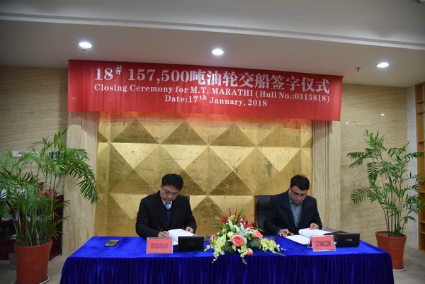 1月17日,18#157500噸油船簽字交付船東。