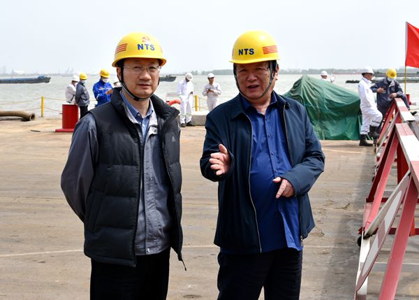 下午1:00,公司西區(qū)2#塢區(qū)域,新建船舶55#156500噸油船漂浮在船塢內(nèi),盛裝待發(fā)。隨著下水準備工作就緒,海事拖輪持續(xù)發(fā)力,55#156500噸油船緩緩駛離船塢,?恐留秆b碼頭,下水大節(jié)點如期實現(xiàn)。董事長袁凱飛、總經(jīng)理劉海金與船東希臘Seaworld公司代表、ABS船級社代表一起到現(xiàn)場觀看船舶下水過程。