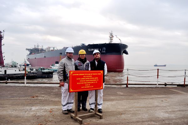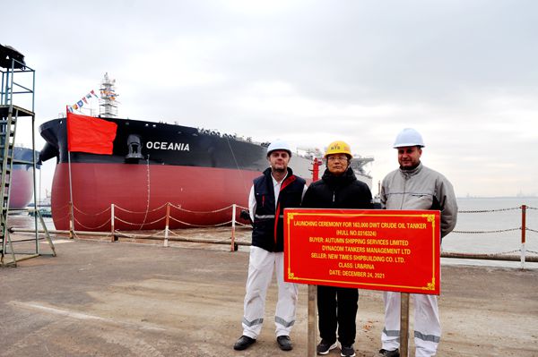 希臘船東達(dá)能孔公司共訂制了五艘同類型163000噸原油船,今天下水的是該系列船中第三、四艘船舶。