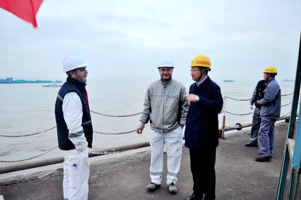 12月24日清晨,公司新區(qū)3#塢區(qū)域,23#、24#163000噸原油船下水前準(zhǔn)備工作有條不紊地進(jìn)行著,隨著海事拖輪就位,船舶下水工作正式啟動,兩船相繼駛出船塢,下水大節(jié)點順利實現(xiàn)。公司總經(jīng)理劉海金、常務(wù)副總經(jīng)理張玉永與希臘船東達(dá)能孔公司代表等一起到現(xiàn)場觀看船舶下水。