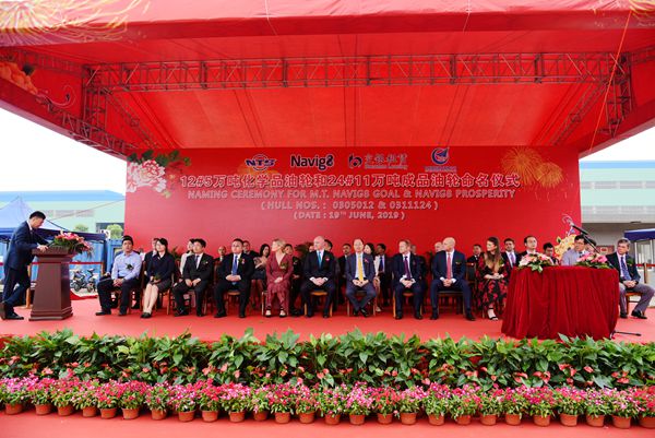 6月19日上午,兩艘船舶命名儀式隆重舉行,公司領(lǐng)導(dǎo)劉海金、張玉永、朱韓鋼、徐震宇、袁衡與12#50000噸化學(xué)品油船、24#110000噸油船船東代表等嘉賓一起出席活動,共同為新船祈福,祝愿新船順風(fēng)順?biāo)?/span>