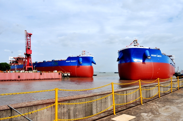 新加坡船東Eastern Pacific Shipping Pte. Ltd.(EPS),目前在我們企業(yè)訂有4艘110000噸油船和11艘210000噸雙燃料動(dòng)力散貨船和7艘7000箱集裝箱船,此次下水的是210000噸雙燃料動(dòng)力散貨船系列中的第4艘和第5艘。