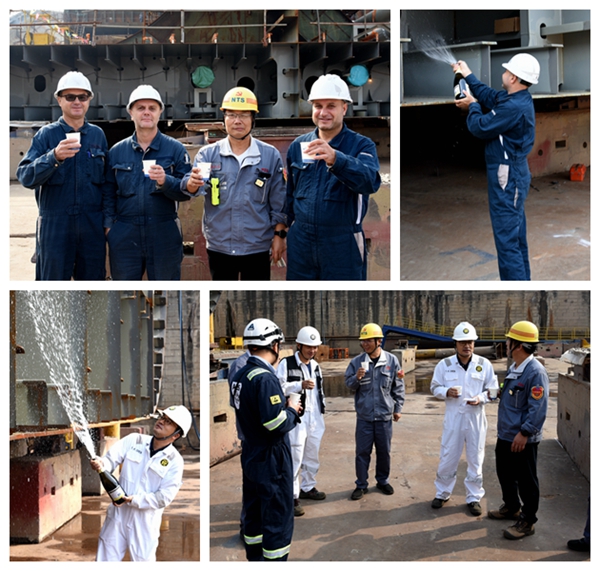 10月10日上午,公司在2#塢內(nèi)舉行船舶進塢合攏儀式,50#115000噸油船、1#11400箱雙燃料動力集裝箱船的船體分段開始進塢合攏。常務(wù)副總經(jīng)理張玉永分別與船東Dynacom、船東CONGLOMERATE MARITIME LIMITED代表出席活動。