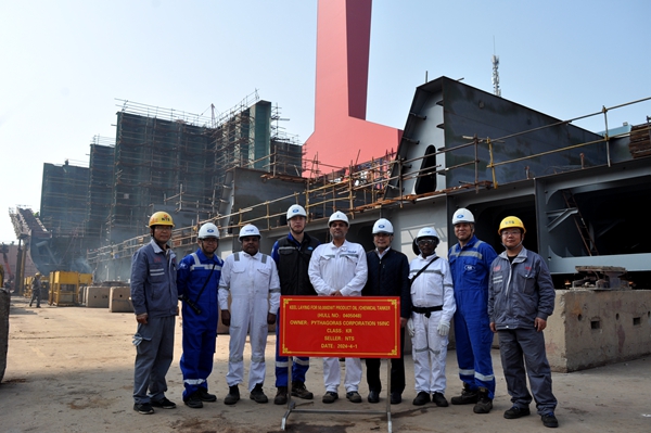 生產(chǎn)管理部、質(zhì)量部、營銷部等部門負責人與英國船東Navig8的現(xiàn)場副經(jīng)理Sunil Kumar團隊等一起出席活動。