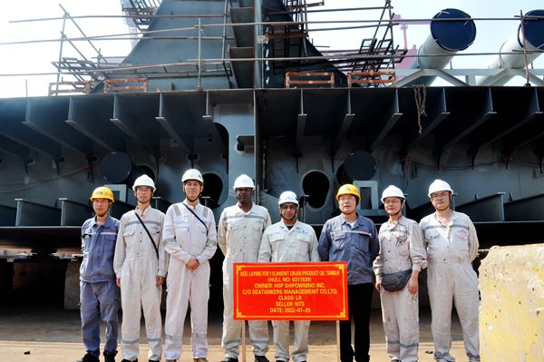 挪威船東Frontline公司在我們企業(yè)共訂制了4艘115000噸油船,此次進(jìn)塢合攏的是首制船,今年1月18日開工建造。