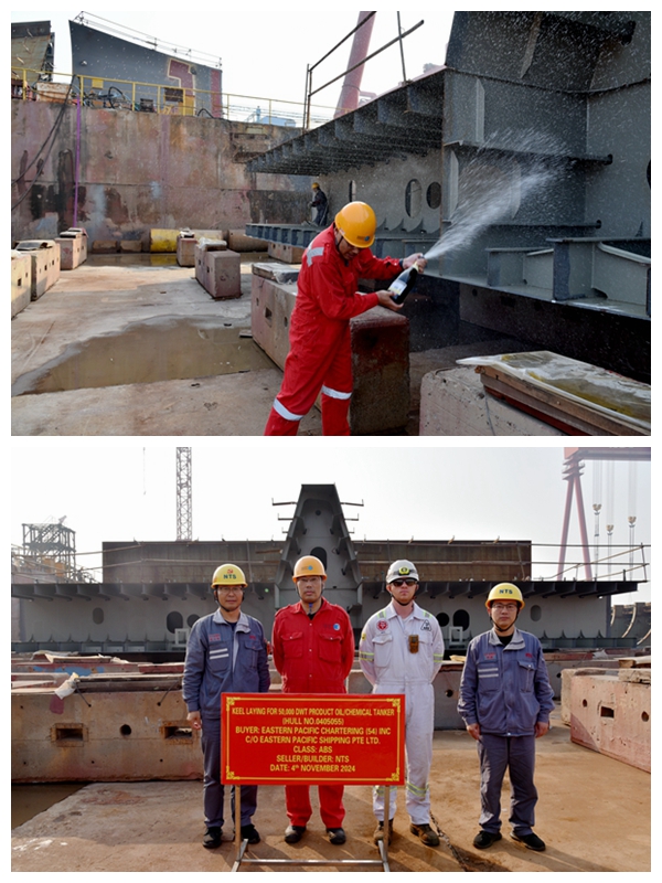 11月4日上午,公司在1#塢區(qū)域內(nèi)舉行船舶進(jìn)塢合攏儀式,55#50000噸Ⅱ類化學(xué)品船、48#115000噸油船船體分段結(jié)構(gòu)開始合攏搭載。