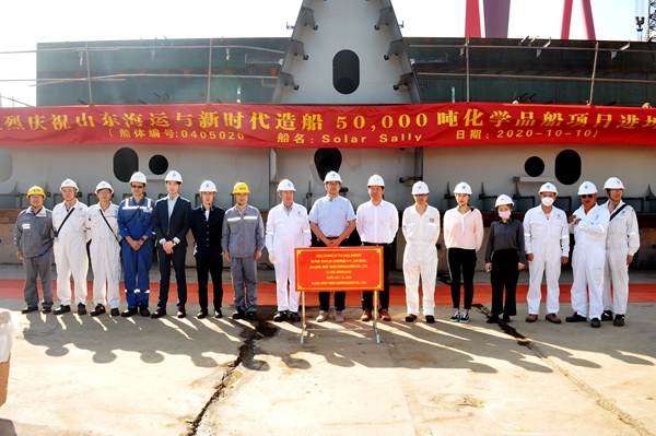 10月10日上午9:00,公司在1#塢內(nèi)舉行船體上臺合攏儀式,20#、21#50000噸化學(xué)品/油船正式進(jìn)塢合攏。公司副總經(jīng)理朱韓鋼與船東山東海運(yùn)公司代表、船級社DNVGL/CCS代表等嘉賓共同出席活動。