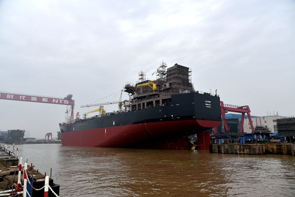 6:00,準備工作就緒,下水號令發(fā)出,海事拖輪緩緩發(fā)力,帶纜員工逐步松開纜繩,4#50000噸化學品/油船緩慢向河下方向移動。在眾人的矚目和隆隆的鞭炮聲中,4#50000噸化學品/油船駛出船塢,成功下水。