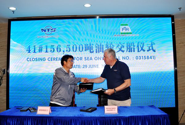 6月29日上午,公司在八樓會(huì)議室舉行船舶簽字交付儀式,41#156500噸油船成功交付希臘船東Pantheon Tankers公司運(yùn)營。