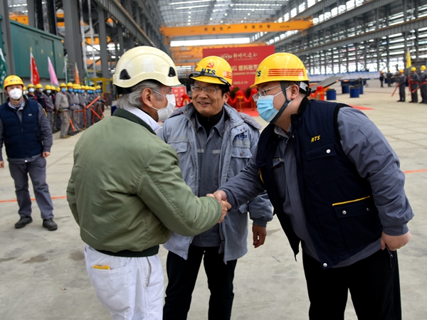 2月10日上午,公司首制0120841船LNG燃料艙開工儀式隆重舉行,常務(wù)副總經(jīng)理張玉永主持儀式,公司領(lǐng)導(dǎo)袁衡、鄭忠、徐震宇、劉鋒與船東喜馬拉雅公司代表Davor Radic、公司相關(guān)部門負(fù)責(zé)人等嘉賓出席活動,共同剪彩,并祝賀公司首制燃料艙順利開工建造。