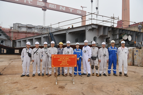 在交船、下水的同時,公司還舉行了上臺合攏儀式,兩艘在建的19#、23#208000噸散貨船的船體合攏建造工作在新區(qū)3#塢內(nèi)正式開始。208000噸散貨船型總長299.95米,垂線間長294.40米,型寬50米,型深24.9米,設計吃水16.1米,結構吃水18.4米,載重20.8萬噸。