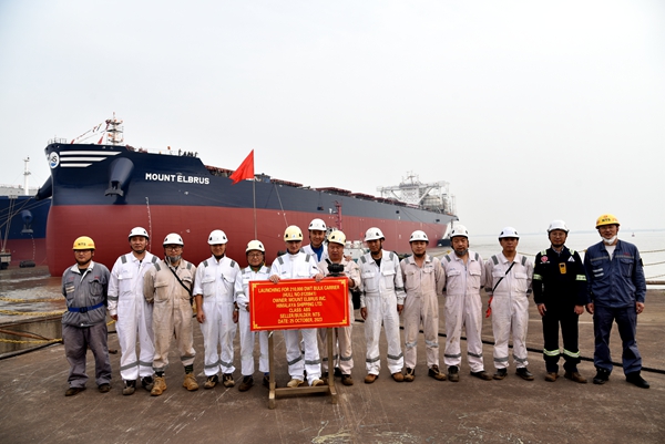 船東EPS公司目前在我們企業(yè)訂有4艘110000噸油船和11艘210000噸雙燃料動(dòng)力散貨船、7艘7000箱集裝箱船、6艘50000噸化學(xué)品船和2艘155500噸雙燃料油船,此次下水的是210000噸雙燃料動(dòng)力散貨船系列船中的第9艘船舶;船東喜馬拉雅公司目前在我們企業(yè)訂有12艘210000噸雙燃料動(dòng)力散貨船,此次下水的也是210000噸雙燃料動(dòng)力散貨船系列中的第9艘船舶。