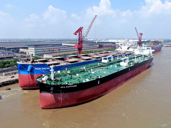 2日上午,公司常務副總經(jīng)理張玉永通過“云交付”儀式與船東希臘Seaworld公司簽署55#156500噸油船交船文本;下午,又與船東沙特BIHAR INTERNATIONAL COMPANY的代表簽署11#110000噸油船交船文本。3日上午,常務副總經(jīng)理張玉永與希臘船東Pantheon Tankers代表簽署42#156500噸油船交船文本,三艘油船成功交付船東運營。