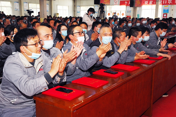 綜合表彰大會在激昂的廠歌聲中拉開帷幕。2020年度評出的249名優(yōu)秀員工、92名優(yōu)秀主管、120名優(yōu)秀班組長、6名優(yōu)秀管理干部、51名優(yōu)秀中干、14外優(yōu)秀外包隊、11名優(yōu)秀職能管理人員、6名降本增效金點子提出者以及獲得年度質量管理獎的3個部門受到表彰。