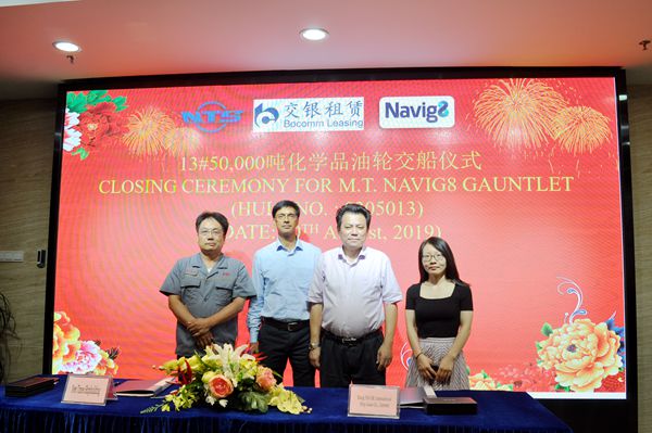 8月30日下午,公司舉行簽字交船儀式,13#50000噸化學(xué)品船正式交付船東。