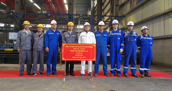 4月24號(hào),公司舉行了第三條325000噸礦砂船開工儀式,該船正式開工建造。公司的副總經(jīng)理朱韓鋼與韓國(guó)船東Pan