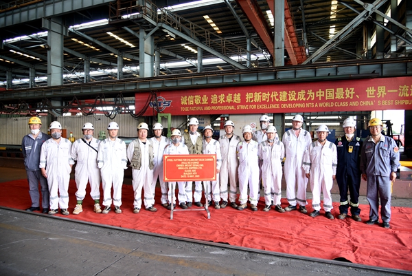 生產(chǎn)管理部部長陳月鋒、質(zhì)量管理部部長秦鋒分別與船東Eastern Pacific Shipping Pte. Ltd.(EPS)代表、船東喜馬拉雅代表及船級(jí)社代表等相關(guān)人員出席活動(dòng),見證船舶開工建造。