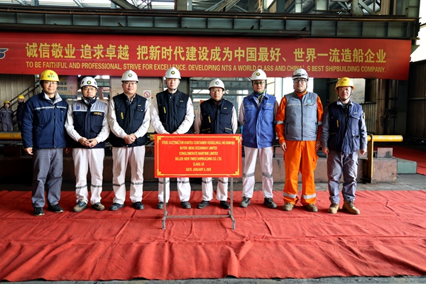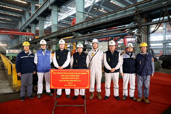 1月6日上午,5#6#8100箱雙燃料動力集裝箱船開工點火儀式在新區(qū)鋼加車間舉行,生產(chǎn)管理部、質(zhì)量部、營銷部等部門負責(zé)人與船東CONGLOMERATE MARITIME LIMITED代表一起出席活動,見證兩艘船舶船體結(jié)構(gòu)件開始預(yù)制。