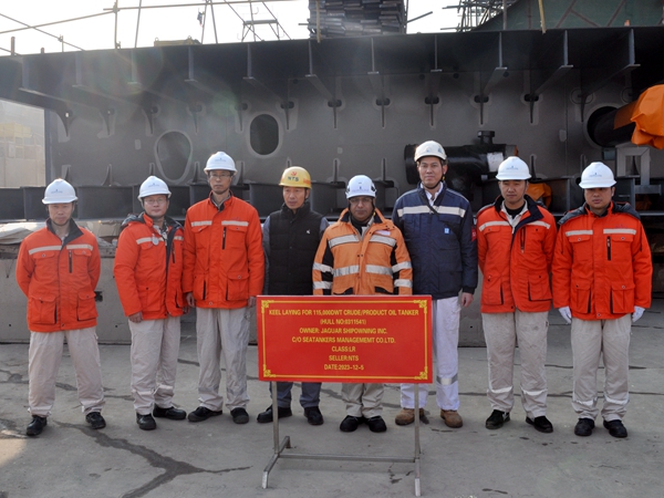 12月5日上午,公司在1#塢內(nèi)舉行船舶進塢合攏儀式,總經(jīng)理助理徐震宇分別與挪威船東Frontline、船東國銀金租的代表出席活動,見證41#115000噸原油/成品油船、37#50000噸Ⅱ類化學品船的船體結構開始吊裝合攏。