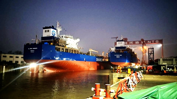 30#31#50000噸Ⅱ類化學(xué)品船成功下水