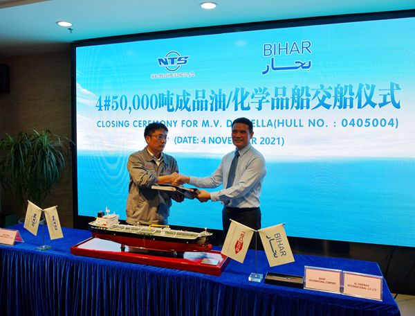 11月4日下午,公司在辦公樓八樓會議室舉行船舶簽字交付儀式,4#50000噸化學(xué)品/油船順利交付船東沙特BIHAR INTERNATIONAL COMPANY運營。