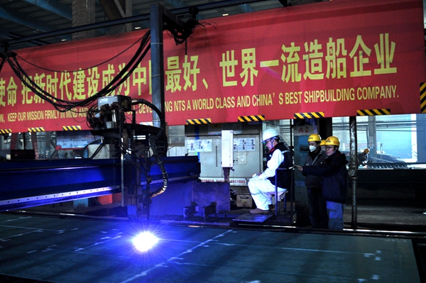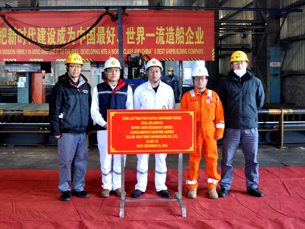 12月13日上午,公司在東區(qū)鋼加車間三跨舉行船舶開工點(diǎn)火儀式,7#8100箱雙燃料動(dòng)力集裝箱船的船體結(jié)構(gòu)件開始預(yù)制。生產(chǎn)管理部等相關(guān)部門負(fù)責(zé)人與船東CONGLOMERATE MARITIME LIMITED代表出席活動(dòng)。