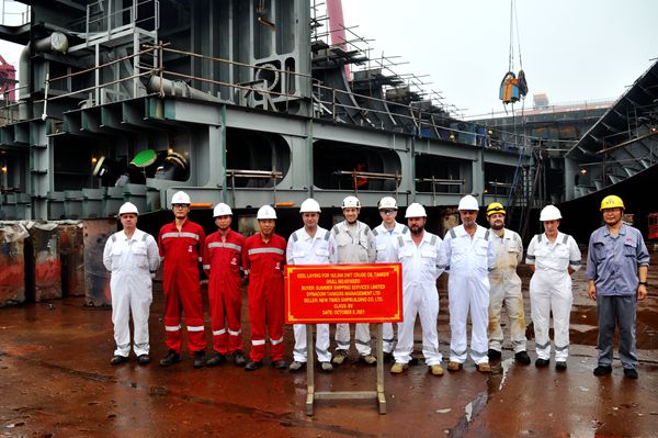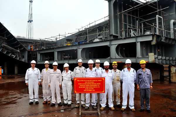 10月8日上午,公司在新區(qū)3#塢舉行船舶進(jìn)塢合攏儀式,23#、24#163000噸原油船船體分段開(kāi)始進(jìn)塢合攏。生產(chǎn)管理部、營(yíng)銷部代表與希臘船東達(dá)能孔公司、船級(jí)社LR/RINA/BV代表等一起出席活動(dòng),見(jiàn)證船舶開(kāi)始搭載建造。