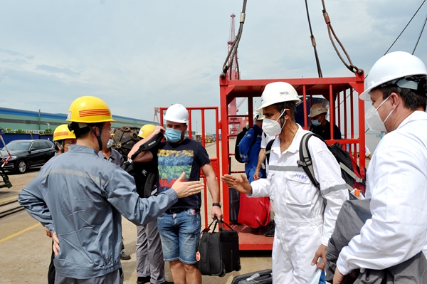 公司總經(jīng)理劉海金,常務副總經(jīng)理張玉永、總經(jīng)理助理徐震宇及各相關(guān)部門負責人一起到東區(qū)碼頭迎接試航團隊,向同志們道一聲“辛苦了”。
