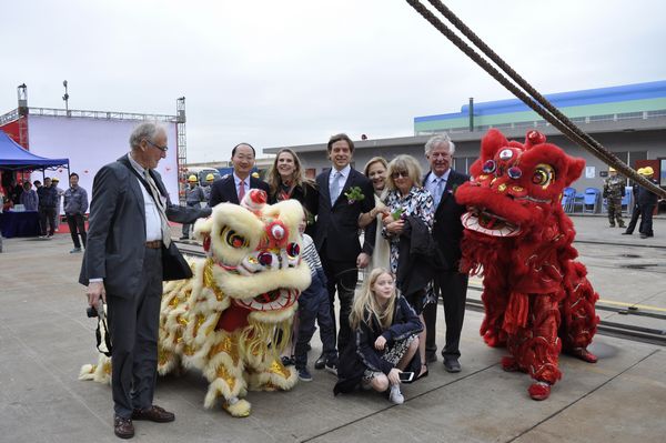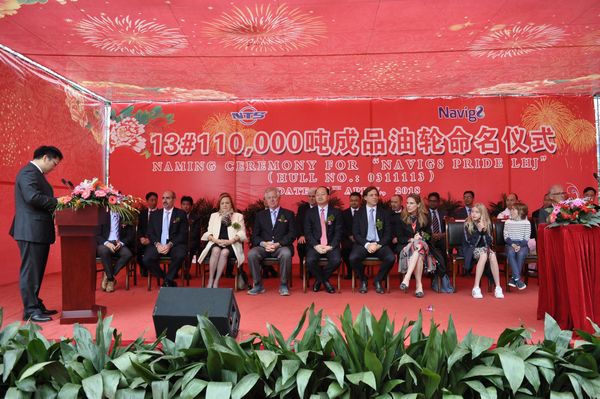 4月13日上午,公司隆重舉行船舶命名儀式,總經(jīng)理劉海金、英國船東代表Nicolas Busch先生出席儀式,常務(wù)副總經(jīng)理張玉永主持儀式,公司領(lǐng)導(dǎo)朱韓鋼、丁柏英、鄭忠、徐震宇與Nicolas Busch先生的家人及船級社代表等嘉賓一起參加了活動。13#111000噸油船被成功命名為“VAVIG8 PRIDE LHJ”號。