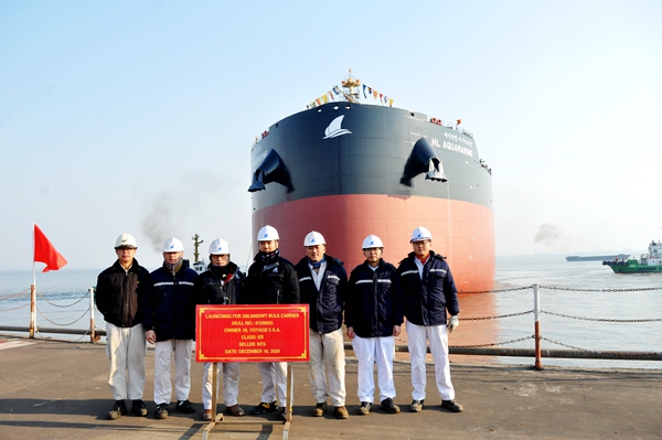 生產(chǎn)速遞:25#208000噸散貨船和26#110000噸油船相繼下水(圖)