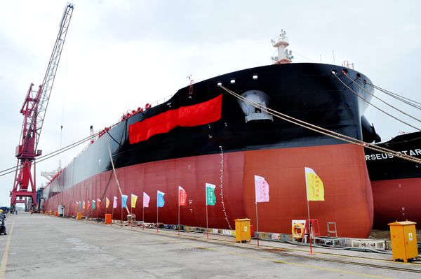 交船進(jìn)行時(shí):32#115000噸油船命名交付(圖)