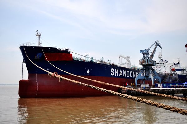 交船進(jìn)行時:22#50000噸化學(xué)品油船完工交付(圖)
