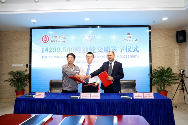 7月22日上午,公司在八樓會議室舉行船舶簽字交付儀式,名為“ATOKOS”號的1#299500噸油船交付希臘船東Dynacom運營。