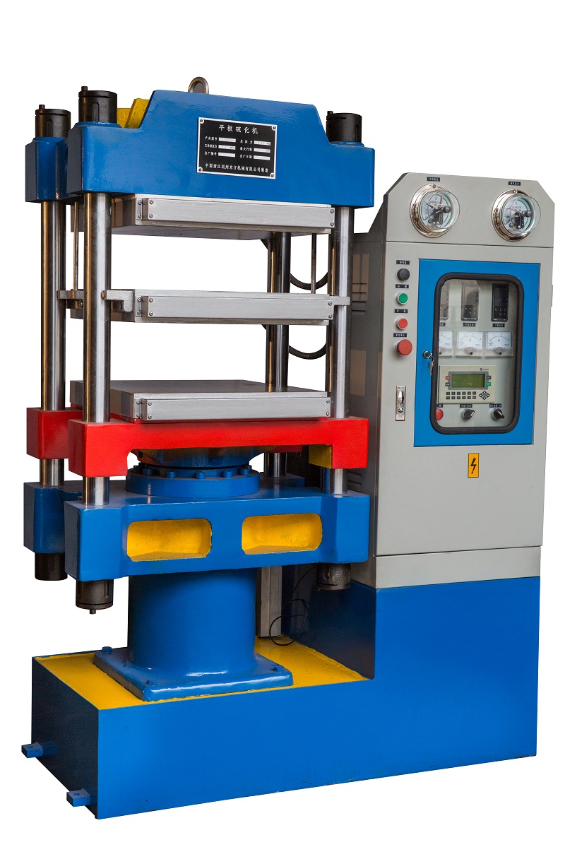 平板硫化機的工作過程概述:其過程就是:先將沒有經過硫化的半成品裝入要做成形狀的模型中,然后將模型放在設備的兩層熱板間隙中,然后我們將液壓缸中注入油或者水,柱塞便開始向上或者下運動,同時也推動著可動平板緊壓著模具運動。這樣經過一段時間的硫化處理后就可以將模具拿下來了,先把液壓缸內的油或者水排出來,這時柱塞下降,可動平板也開始放松,然后就可以將制品取下來了。