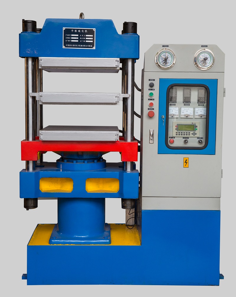 平板硫化機(25噸、30噸),本機適用于壓制各種模壓制品,如壓橡膠和塑料,也適用于薄片制品。本機 床為四柱式整體結構,壓制型式為下(向上)壓式,分主機,油箱和電控箱三部分。主機裝有柱 塞,油缸,固定平板,活動平板等部件。油箱有油泵,管道,閥等部件。油泵有電動機帶動,電控箱裝有按鈕開關,磁力啟動器,計時報警器,制動控溫儀,過載保護器等。當電動機過載能自動切斷電源,電加熱由自動控溫儀分三路控溫,能在20-200度...